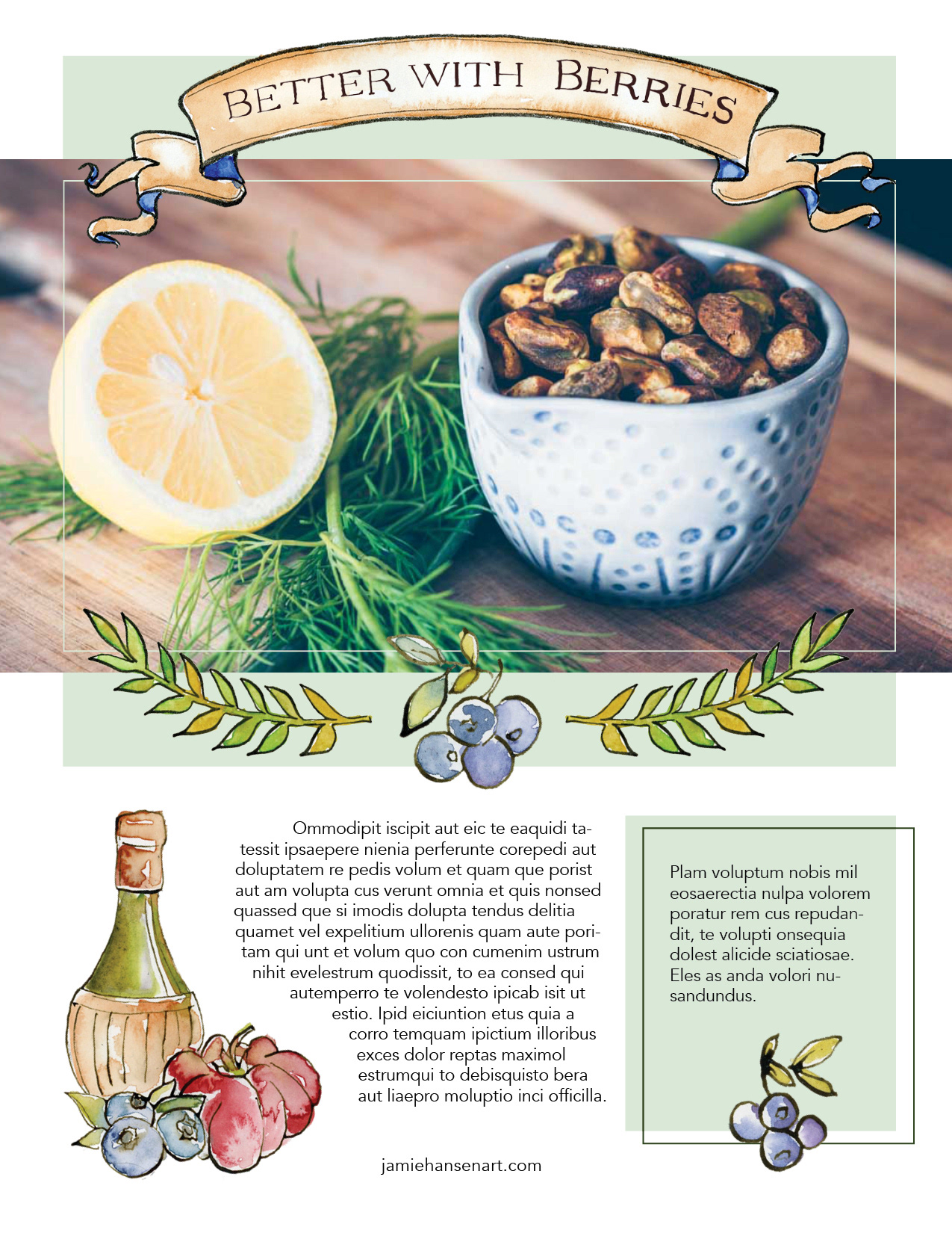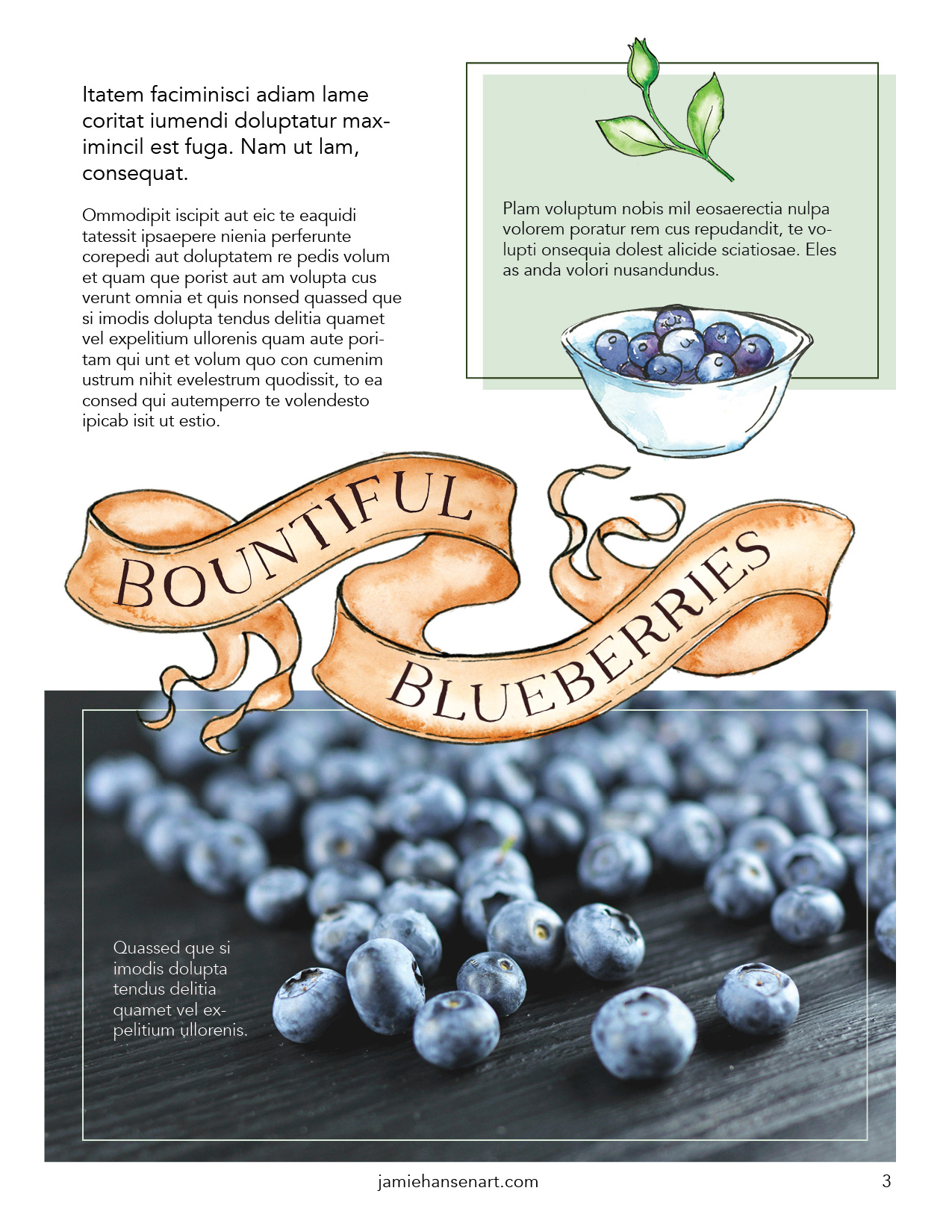 My hand lettered banners and watercolor illustrations add an earthy feel to catalog and magazine spreads. Commission me to create editorial illustrations for books and magazines.
